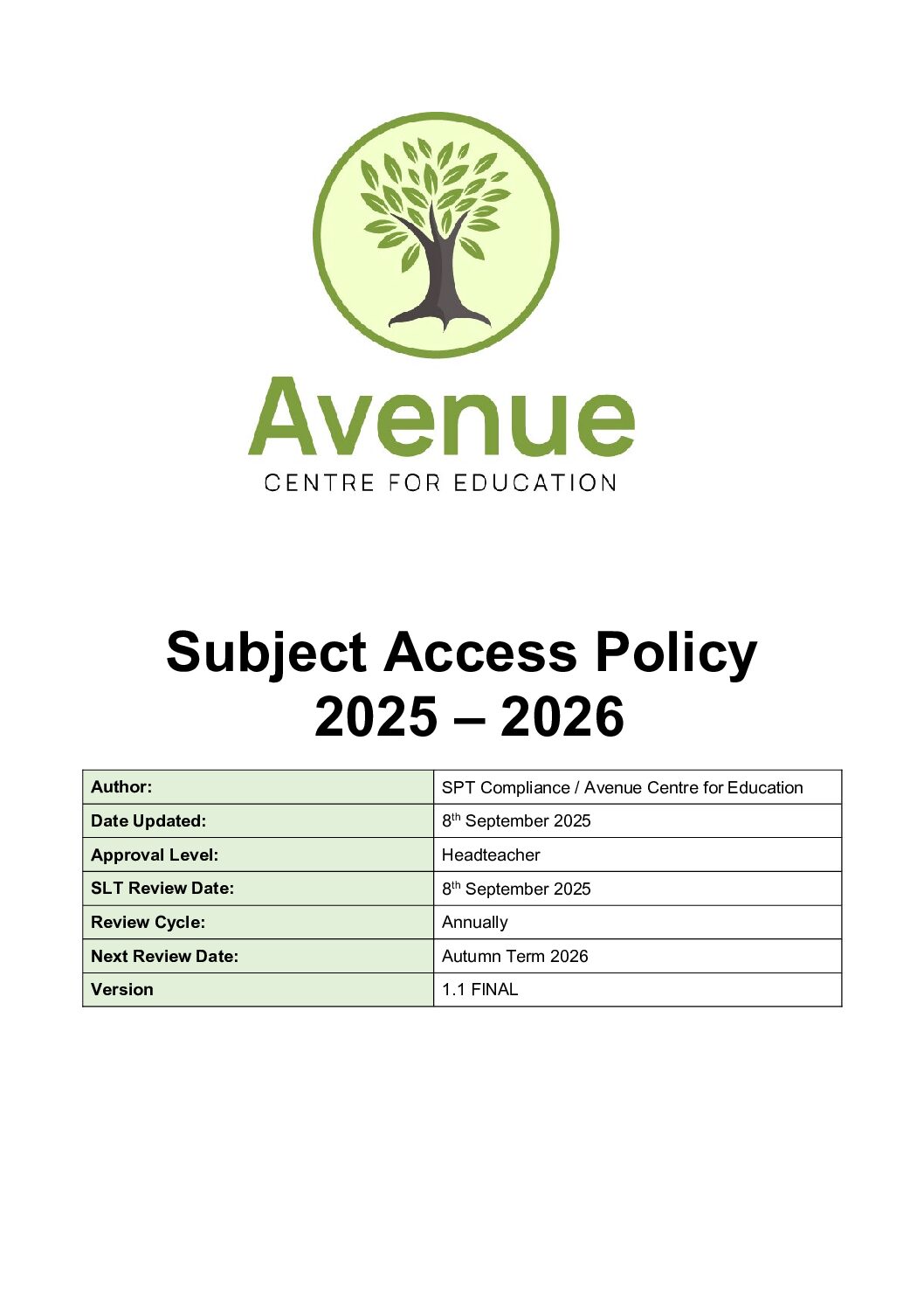 GDPR: Subject Access Request Policy 2025 – 2026