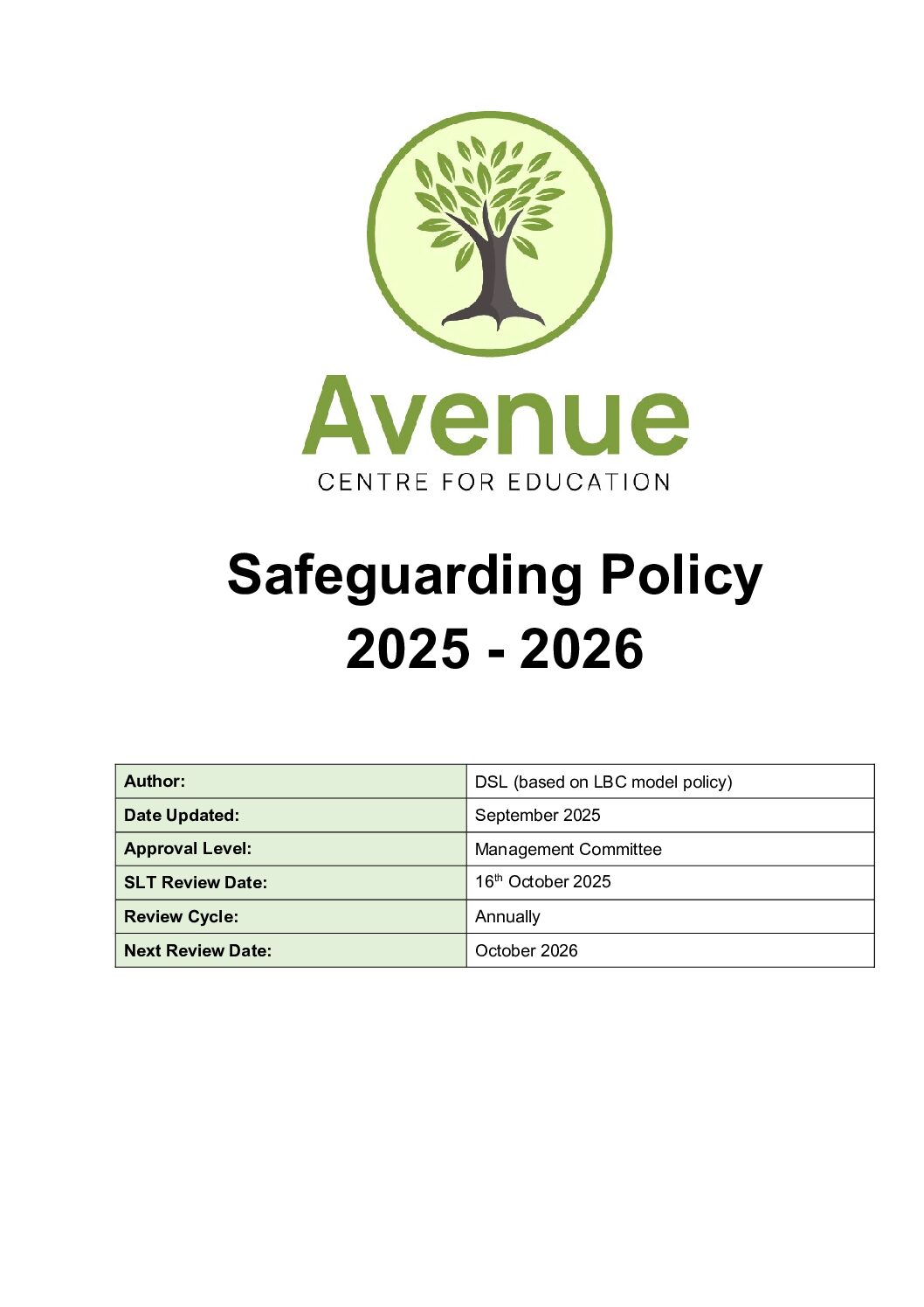 Safeguarding Policy 2025 – 2026